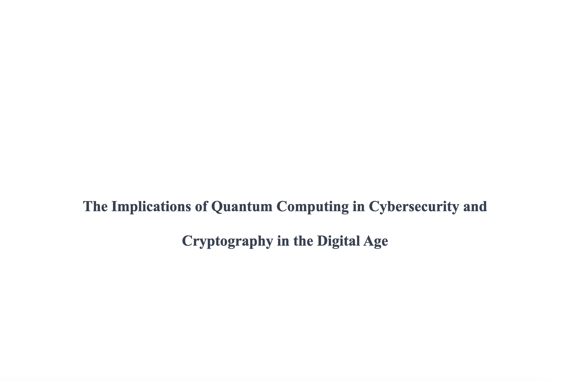 Quantum computing represents a revolutionary advancement in computational power that threatens existing cybersecurity measures by potentially breaking current encryption standards like RSA through superior processing capabilities. This paper examines the implications of quantum computing on cybersecurity, highlighting the development of quantum-resistant encryption methods such as lattice-based algorithms and emphasizing the urgent need for collaboration between governments, businesses, and experts to protect financial systems, national security, and individual privacy in the emerging quantum era.