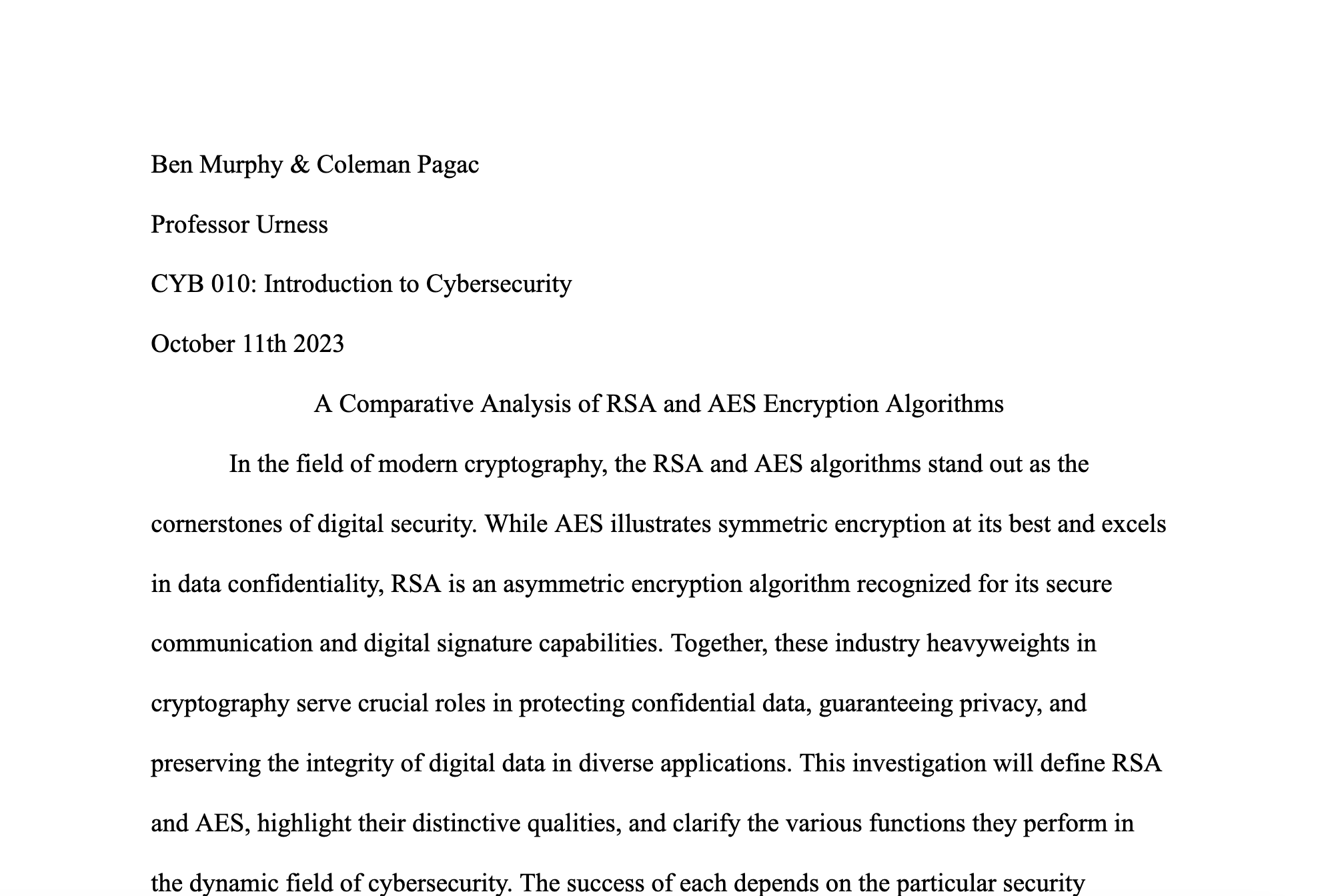 RSA and AES encryption algorithms serve as the cornerstones of modern cryptographic security, with RSA utilizing asymmetric key pairs for secure communication and digital signatures while AES employs symmetric block cipher encryption with substitution-permutation networks for superior data protection. Despite RSA's versatility and wide application, the paper concludes that AES offers greater long-term security against quantum computing threats and has become the gold standard in cybersecurity due to its resistance to various cryptanalytic attacks and its flexible implementation options with different key lengths.